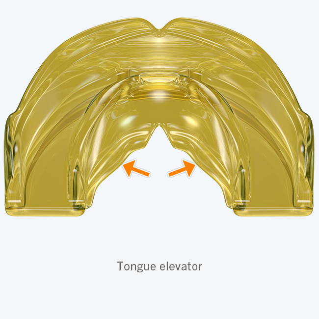 - Tongue elevator encourages the body of the tongue to rest in the roof of the mouth